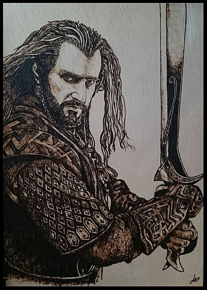 Cuadro pirograbado de Thorin ''Escudo de Roble'', personaje visto en la trilogía de ''El Hobbit''